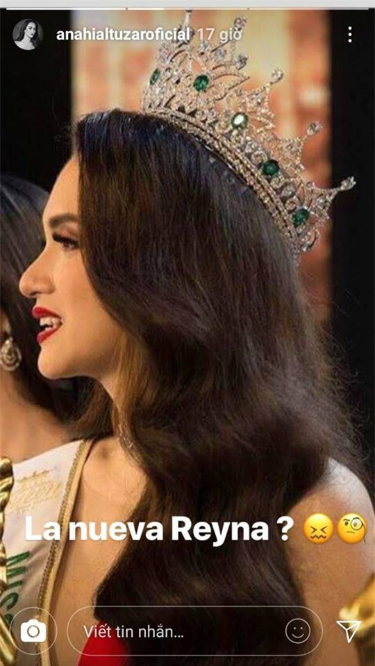 Người đẹp Mexico - Anahi Christobal Altuzar đã đăng hình ảnh đăng quang của Hương Giang lên trang Instagram cá nhân, kèm theo dòng chữ "La nueva reyna?" (dịch ra tiếng Việt là "Nữ hoàng mới?"). Đặc biệt, cuối dòng chữ này còn để dấu "?" cùng hai biểu tượng cảm xúc biểu thị sự khó chịu, bất bình. Tuy nhiên, cùng thời điểm, trưởng BTC cuộc thi trả lời phỏng vấn và khen ngợi Tân Hoa hậu hết lời.