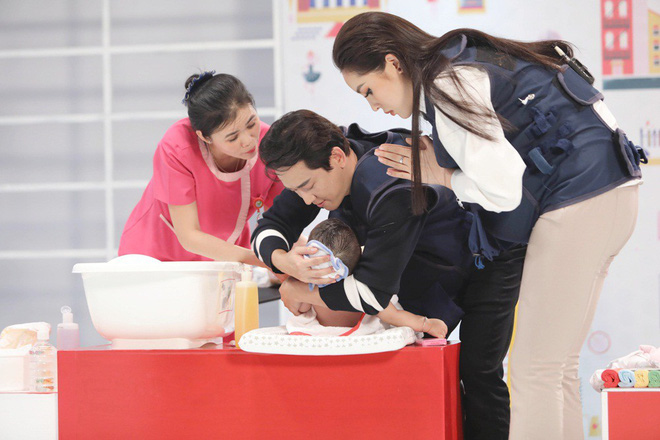 Tới thử thách tắm cho bé, các đội chơi phải vất vả hơn rất nhiều, vì tất cả đều là trẻ sơ sinh thật. Chúng khóc rất nhiều và nhất quyết không cho tắm.