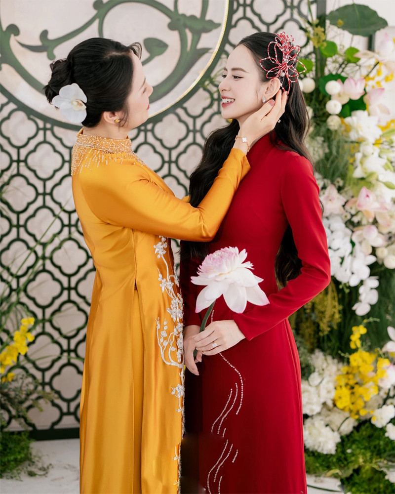 Lễ ăn hỏi của Hương Liên được tổ chức vào đầu tháng 6 với phong cách trang trí sang trọng, cổ điển. Đặc biệt, hoa sen được chọn làm hình ảnh chủ đạo. Để tôn vinh nét đẹp truyền thống Việt Nam, nhiều chiếc nón lá cũng được sử dụng khéo léo trong trang trí. Đám cưới chính thức của Hương Liên và ông xã thiếu gia dự kiến sẽ diễn ra vào cuối năm 2025.