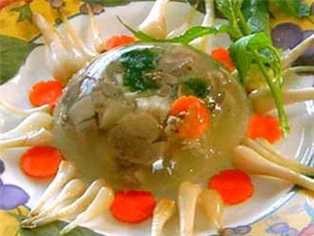 Thưởng thức thịt đông với cơm, bánh chưng và dưa kiệu, bạn sẽ cảm nhận được hương vị Tết trọn vẹn. Sự hòa quyện, gắn kết giữa các thành phần, màu sắc của món ăn như một lời cầu chúc may mắn cho cả gia đình.