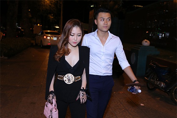 Hương Tràm đi chung xe hơi màu trắng với trai lạ. Anh chàng tỏ ra quan tâm và chăm sóc cho nữ ca sĩ từ khi cô bước xuống xe.