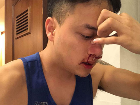 Đăng tải hình ảnh Cao Thái Sơn đang ôm mũi vì chảy máu, quản lý của nam ca sĩ chia sẻ: "Nửa đêm phải đi cấp cứu, mà lại sắp bay đi Úc nữa rồi... cố lên Sơn ơi".