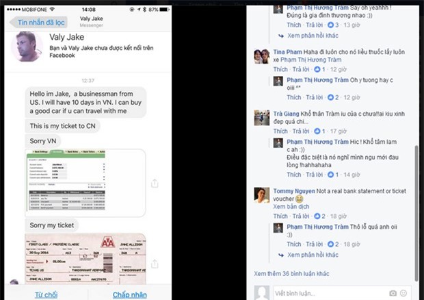 Hương Tràm vừa chia sẻ tin nhắn của một khách du lịch gửi tới cô với đề nghị đi du lịch chung khoảng 10 ngày và hứa hẹn sẽ mua cho cô một chiếc xe hơi. Tin nhắn của người khách ngoại quốc có nội dung như sau: "Tôi