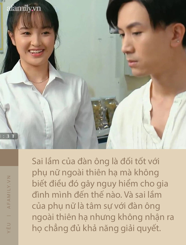 Sai lầm của đàn ông là đối tốt với phụ nữ ngoài thiên hạ mà không biết điều đó gây nguy hiểm cho gia đình mình đến thế nào. Và sai lầm của phụ nữ là tâm sự với đàn ông ngoài thiên hạ nhưng không nhận ra họ chẳng đủ khả năng giải quyết những rắc rối nội tại của chính bạn.