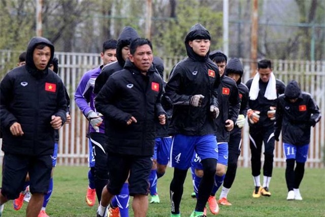 HLV Hữu Thắng chủ yếu co học trò xả sức ì, còn bài tập chiến thuật quyết định được dành đến buổi tập làm quen mặt sân đá chính thức vào chiều mai (28-3). Thế cho nên, cầu thủ được tập khá thoải mái và nụ cười tràn ngập trên sân tập của tuyển Việt Nam. Phía VFF cũng thận trọng, trang bị cho học trò HLV Hữu Thắng gang tay giữ ấm, áo khoác mùa đông nên sức khỏe đảm bảo.