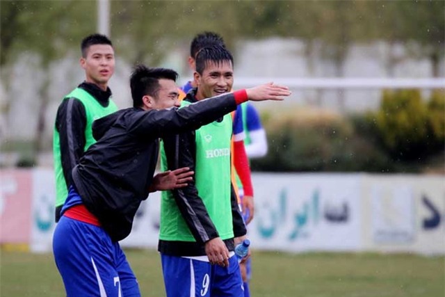 Cơn mưa bất ngờ ở Tehran đã kéo nhiệt độ xuống còn 10 độ C, khiến buổi tập của tuyển Việt Nam trở nên vất vả ngoài dự kiến. Tuy nhiên, bất chấp điều kiện khắc nghiệt này, HLV Hữu Thắng và học trò vẫn tập luyện rất nghiêm túc.