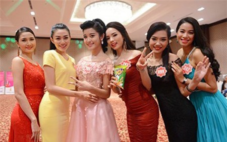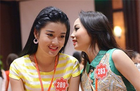 Mặc dù dư luận liên tục "mổ xẻ", so sánh nhan sắc, "hai ả Tố Nga"của Hoa hậu Việt Nam 2014 vẫn rất thân thiết