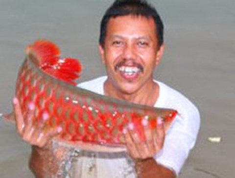 - Có, thi thoảng vẫn có. Có người câu được con 2kg, con 5kg.. Cá câu được họ dưỡng dữ lắm vì giá trị cao... Nhưng lâu lâu mới có người câu được một con, giống cá này giờ hiếm lắm.
