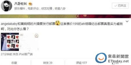 Theo thông tin, bộ tem cưới của Huỳnh Hiểu Minh và Angela Baby sẽ được bán với giá 199 NDT (tương đương gần 700 nghìn đồng) mỗi bộ. Ngay sau khi thông tin được đưa ra, nhiều bình luận trái chiều đã được netizen đăng: "Hai người này vẫn chưa chịu kết thúc sao?", "Có phải hôn lễ đã tốn quá nhiều tiền không không vậy?", tuy nhiên lại có bình luận tỏ ra rất mong chờ bộ tem này: "Hãy bán mau đi, tôi muốn sưu tập lắm". Sau đó, không rõ vì lý do gì mà vị blogger này đã xóa bài viết.