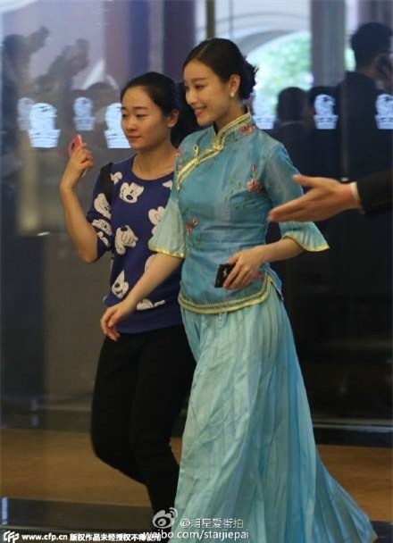 Triệu Vy ăn vận khá đơn giản. Cô đi cùng con gái Vương Phi - Đậu Tĩnh Đồng.