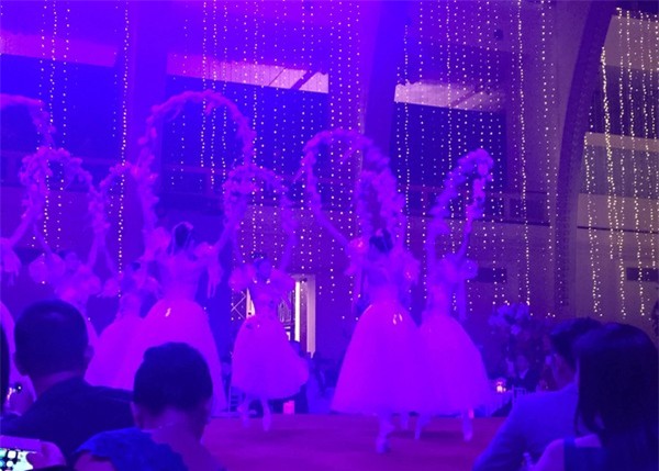 Sân khấu được xây dựng như một lâu đài cổ tích, được biết cô dâu sẽ bước ra ra như một nàng công chúa.