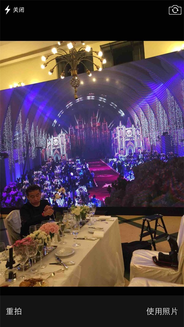 Hơn 20h tối, hôn lễ của Huỳnh Hiểu Minh và Angelababy chính thức diễn ra. Toàn bộ hình ảnh nghi lễ được trình chiếu trên màn hình rộng, nơi quan khách có thể vừa thưởng thức bữa tiệc, vừa ngắm nhìn "tân lang, tân nương".