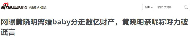 Trong bài báo của Sina vào hôm 29/ cũng đã đề cập tới thông tin liên quan tới cuộc hôn nhân của Huỳnh Hiểu Minh và Angelababy. Theo Sina, trên thực tế cuộc hôn nhân của Angelababy và Huỳnh Hiểu Minh có trục trặc nhưng chưa đến mức ly hôn.