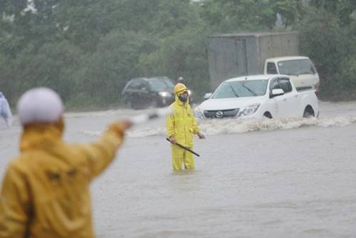Ô tô, xe máy không thể lưu thông vì ngập sâu