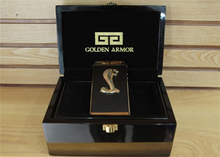 Hình rắn hổ mang chúa đúc từ vàng nguyên khối gắn ở mặt sau điện thoại.