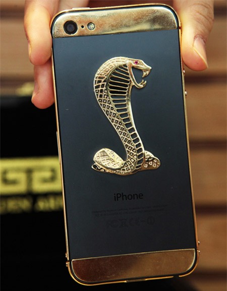 Hình ảnh cận cảnh iPhone 5 khảm rắn vàng giá 290 triệu đồng: