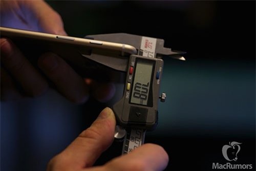 Kết quả đo đạc kích thước iPhone 6s khá trùng khớp với những tin đồn trước đó nói rằng thiết bị sẽ dày hơn 1 chút so với người tiền nhiệm. Như vậy, nhiều khả năng iPhone mới sẽ dày và lớn hơn so với iPhone 6.