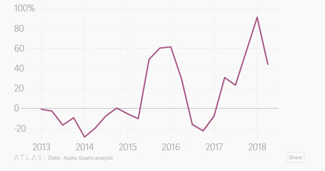 Yếu tố chính dẫn tới sự thay đổi này là chiếc iPhone X với giá bán lẻ 999 USD. Theo một thống kê từ tổ chức CIRP, có tới trên 26% số người mua iPhone trong quý vừa qua đã mua một chiếc iPhone có giá hơn 900 USD. Một năm trước, con số này chỉ là 5%. CEO Tim Cook cho biết tốc độ tăng trưởng của iPhone X đang vượt qua con số trung bình của thị trường smartphone.