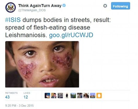 Bộ Ngoại giao Mỹ cũng lên tiếng cáo buộc IS là thủ phạm gieo rắc vi trùng ăn thịt người ở Syria. Ảnh: Daily Mail |