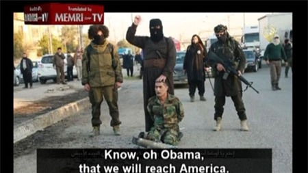 Một trong ba chiến binh nói trong đoạn video: “Obama, ông biết đấy, điều đó sẽ lan tới Mỹ. Bọn ta sẽ cắt đầu ông trong Nhà Trắng và biến Mỹ thành một tỉnh Hồi giáo”.