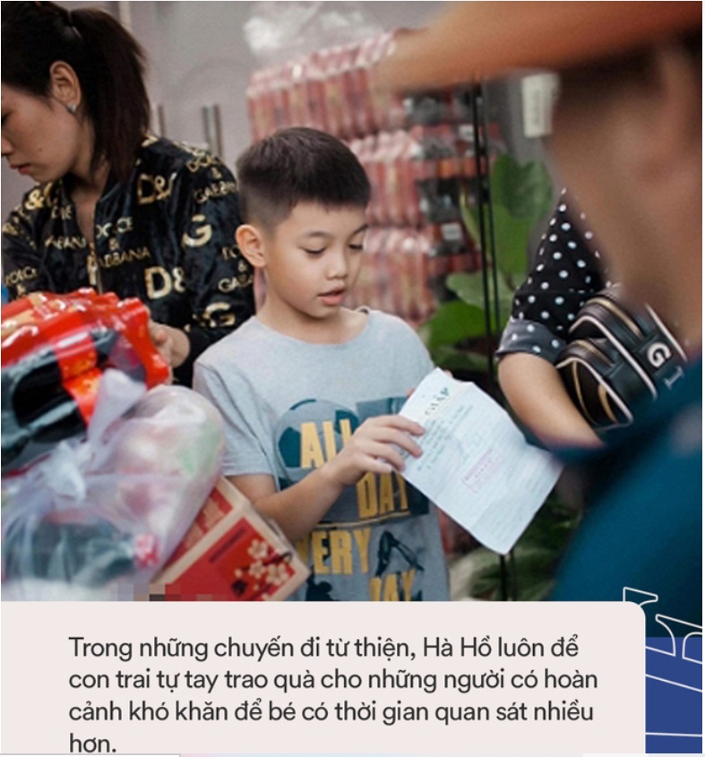 Trước đó, Hồ Ngọc Hà thường xuyên dạy Subeo đức tính sẻ chia, biết giúp đỡ những mảnh đời khó khăn. Trong những chuyến từ thiện, nữ ca sĩ thường xuyên cho con trai đi cùng, để cậu bé hiểu được những việc làm của mẹ.