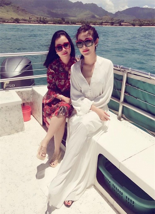 Huyền My và mẹ trong chuyến công tác ở Hawaii, Mỹ.