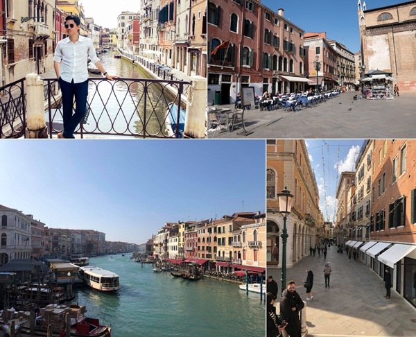 Trần Anh Tuấn và những bức ảnh anh chụp lại thành phố Venice trước khi về nước. Đâu đâu cũng vắng vẻ. Ảnh: Trần Anh Tuấn.