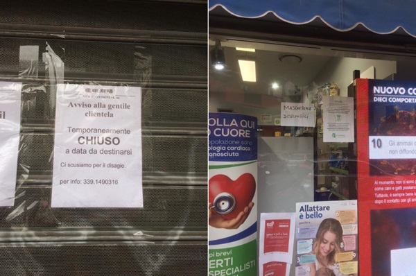 Các siêu thị ở Milan đầy ắp đồ hôm 9/1 và một nhà hàng treo biển tạm nghỉ. Ảnh: Trung Kiên.
