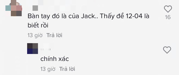 Netizen đồng loạt cho rằng bàn tay trong ảnh là của Jack vì 12/4 là dịp sinh nhật nam ca sĩ