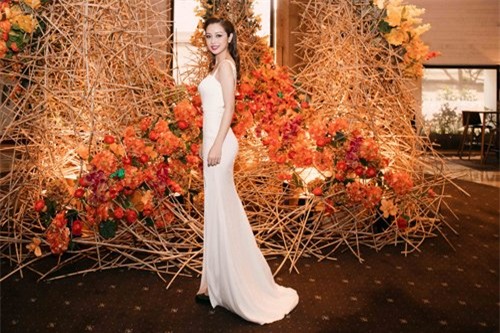 Jennifer Phạm chọn mẫu đầm trắng ôm sát với đường xẻ cao