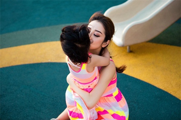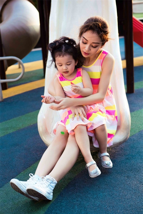 Hai mẹ con tông xuyệt tông vui đùa bên nhau