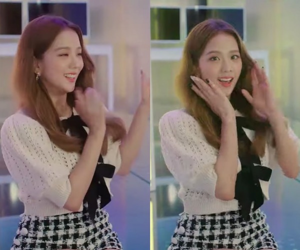 Mẫu áo len móc đính nơ với chi tiết tay bồng này vốn khá điệu đà, dễ tạo cảm giác sến súa, vậy nhưng Jisoo vẫn có thể cân đẹp. Thậm chí, kiểu áo này còn càng khiến nhan sắc của Jisoo thêm phần ngọt ngào, nữ tính, hack tuổi đáng kể.