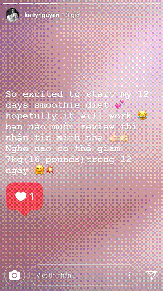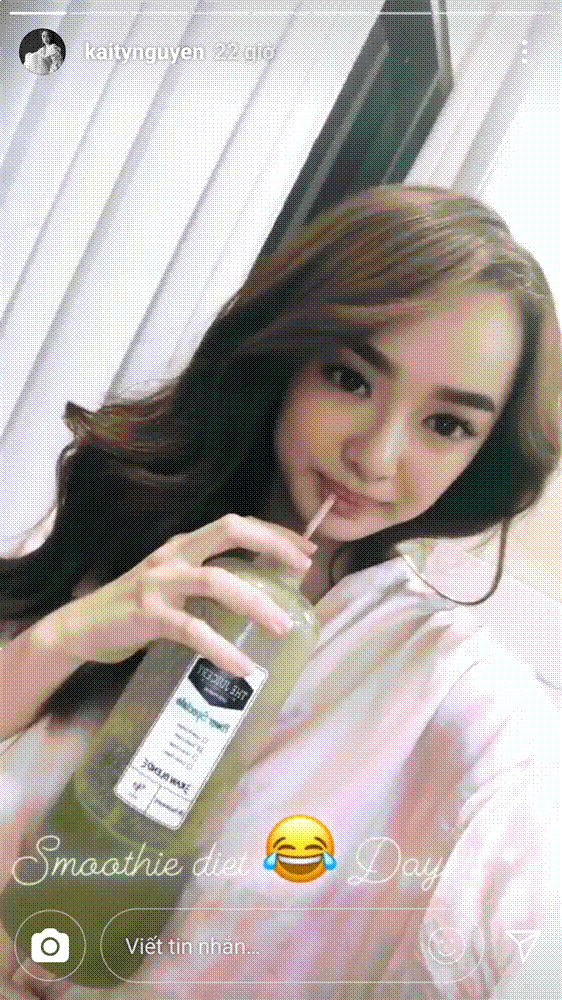 Kaity Nguyễn nhiều lần chia sẻ về các phương pháp mình đã áp dụng để giảm cân, một trong số đó là thanh lọc cơ thể với nước ép hoa quả.