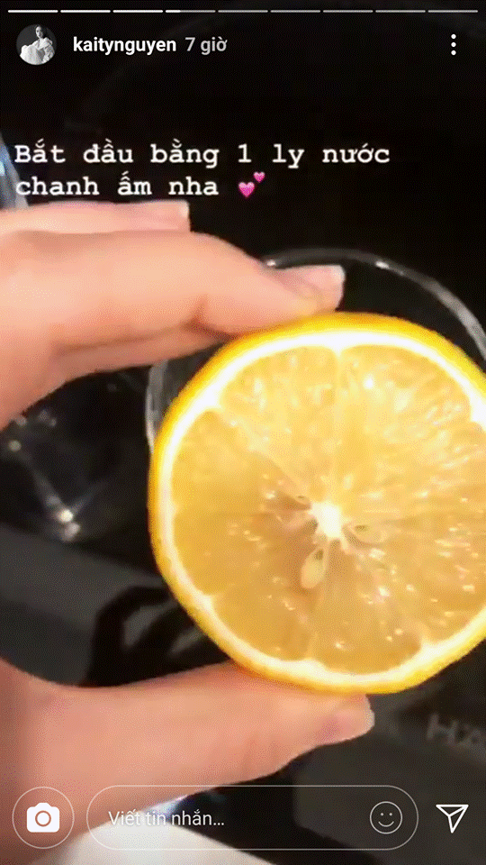 Buổi sáng khi vừa thức dậy, cô sẽ uống một cốc nước chanh ấm pha loãng.