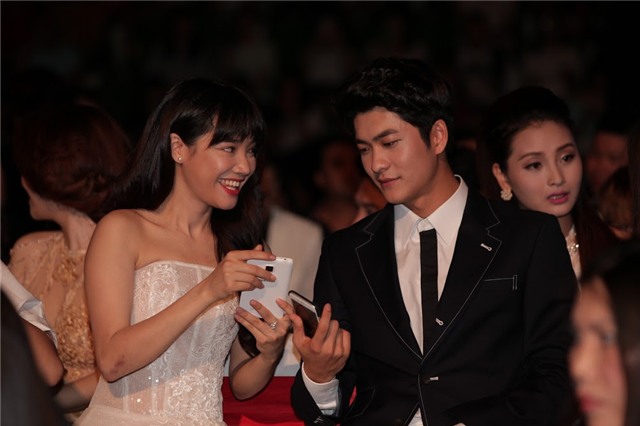 Nhã Phương và Kang Tae Oh tại lễ trao giải VTV Awards tối 6/9. |