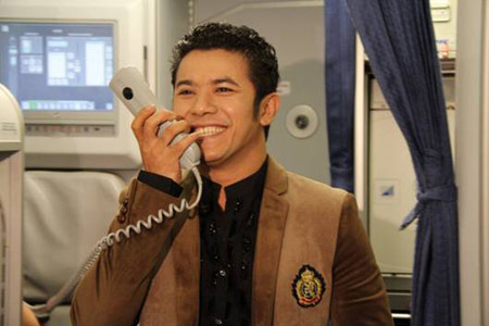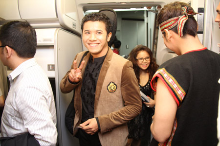 Kasim Hoàng Vũ và các tiếp viên VietJetAir trên chuyến bay