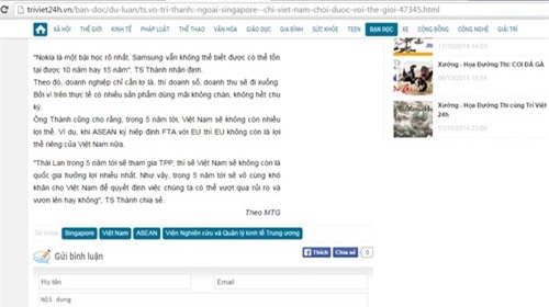 Vô liêm sỉ hơn, mặc dù liên tục ăn cắp tin, bài từ các báo khác nhau, nhưng ở cuối trang tin này lại còn có dòng chữ “Ghi rõ nguồn TRIVIET24H.VN khi bạn phát hành lại thông tin từ website này”.