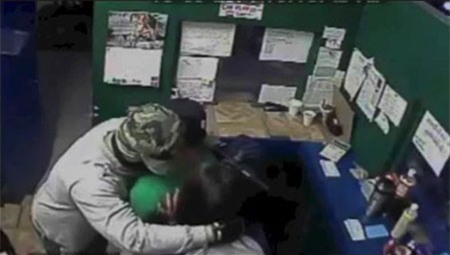 “Hắn ta nói nếu chúng tôi không mở cửa, hắn sẽ bắn. Quá hoảng sợ, chúng tôi phải làm theo”, nạn nhân kể lại. Sau khi vào được bên trong, kẻ cướp tiếp tục gom tiền và lấy cả ví của Olivarez, trong đó có 200 USD và chứng minh nhân dân của anh này.
