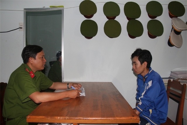 | Cán bộ điều tra lấy lời khai đối với nam thanh niên gây ra vụ án giết người, hiếp dâm trẻ em. |