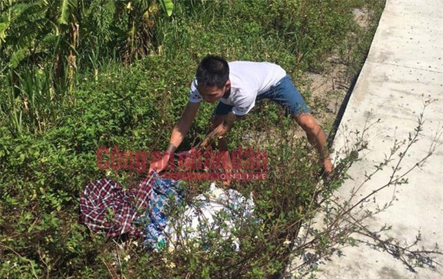 Đối tượng Lê Việt Hoàn chỉ nơi ném áo chống nắng sau khi gây án. |