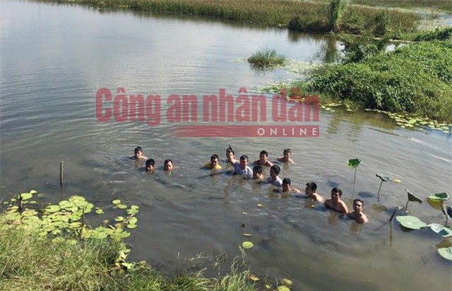 việc tìm kiếm khẩu súng gây án đối tượng ném xuống hồ nước. |