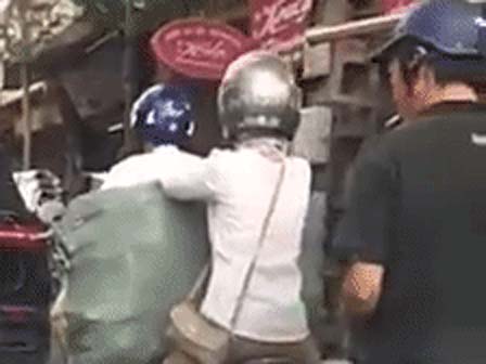 Trong đoạn clip dài khoảng 34 giây, một người đàn ông mặc áo đen đi bộ liên tục lấy tiền trong ví của người phụ nữ đang ngồi sau chiếc xe máy. Do mang vác cồng kềnh và khá sơ hở trong việc cất giữ tài sản, tên trộm đã thản nhiên lấy tiền trong khi người chủ không hề hay biết.