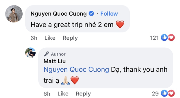 Dịp đầu năm 2022, Matt Liu post ảnh kỉ niệm chuyến đi thăm thú Hạ Long và Cường Đô La đã vào bình luận thế này. Mối quan hệ anh em của 2 doanh nhân này cũng thân thiết lắm nha!