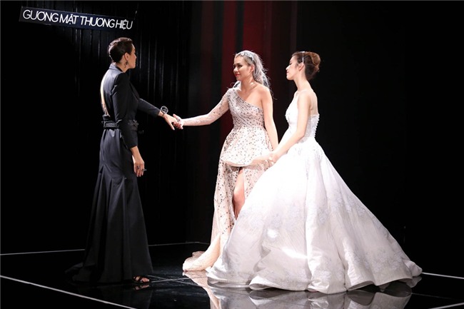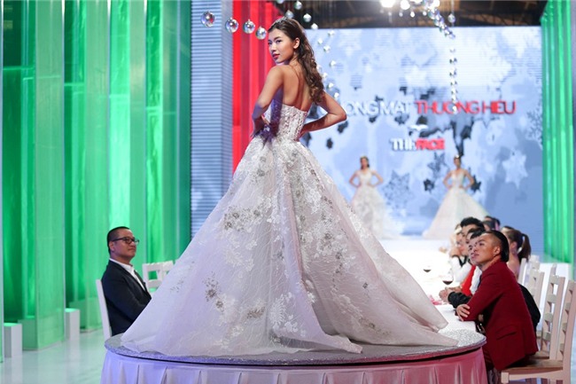 Bộ trang phục tiếp theo là những chiếc áo cưới nhẹ nhàng, dễ di chuyển, đây cũng là lợi thế của hai cô nàng. Mặc dù trên đường đi có rất nhiều chướng ngại vật nhưng Tú Hảo vẫn nhẹ nhàng lướt qua khiến các HLV rất ấn tượng.