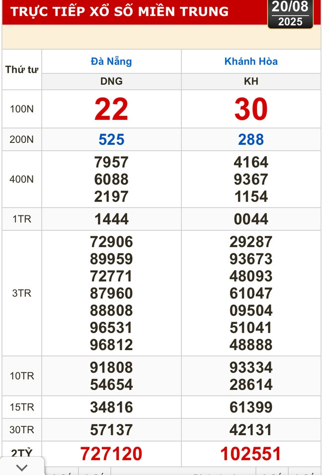 Kết quả xổ số miền Trung: Đà Nẵng, Khánh Hòa