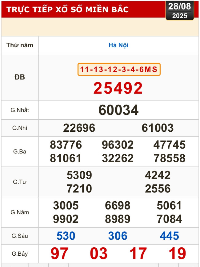Kết quả xổ số miền Bắc (XSMB): Hà Nội