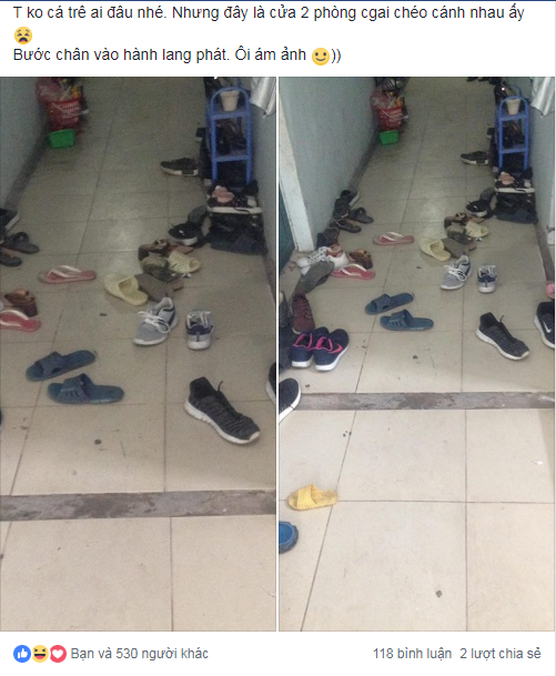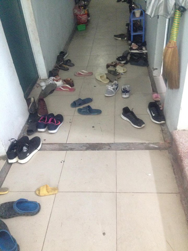Theo chia sẻ của chàng trai, anh chàng bước về tới hành lang của khu ký túc xá thôi đã phát ớn với đống giầy dép lộn xộn, chắn hết cả lối đi: