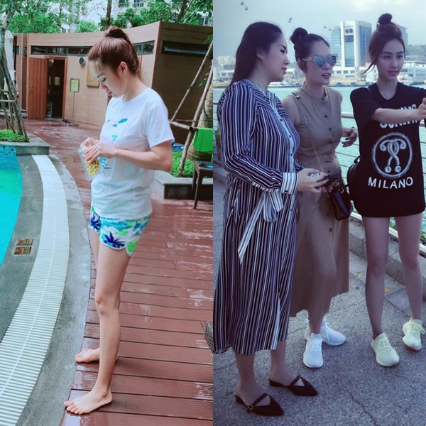 Đi cùng gia đình cô còn có hội bạn thân Ngân Khánh, Thúy Diễm và Dương Cẩm Lynh.