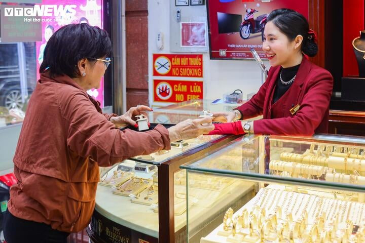 Trong khi đó, một vị khách vừa bán vàng lại vui vẻ nói: "Trước đây tôi mua vàng nhẫn giá 76 - 78 triệu đồng/lượng, vì năm nay tôi xây nhà mới mà vẫn còn thiếu tiền nên nhân cơ hội giá vàng nhẫn đang cao tôi mang vàng đi bán để chốt lời lấy thêm chi phí. Sau này khi có tích lũy, tôi sẽ lại mua vàng nhẫn để tiết kiệm".