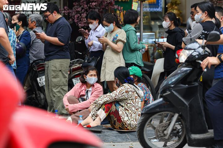 Xếp hàng 2 - 3 tiếng đồng hồ vẫn chưa đến lượt mua vàng, nhiều vị khách mệt mỏi vạ vật ngồi trên vỉa hè.